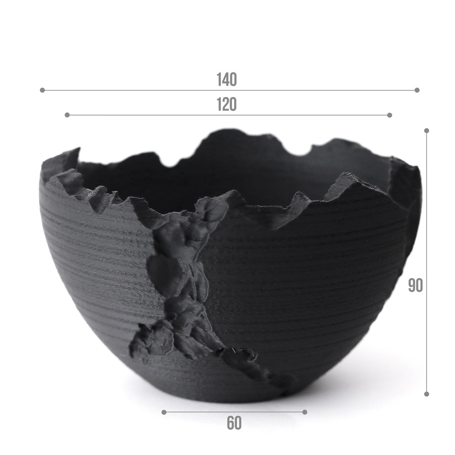 Adv-055-L (140×90) Erosion cr|自然侵食を模したクラッキング鉢|3Dプリント鉢 – CRACK BLACK 塊根植物・多肉植物に最適 3dプリンター鉢